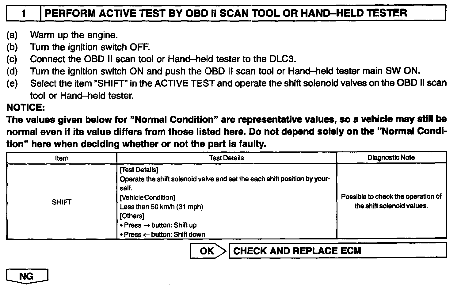 Manual shifting as shown in the table must be done (In case of a short circuit, the ECM stops sending the current to the short circuit solenoid).