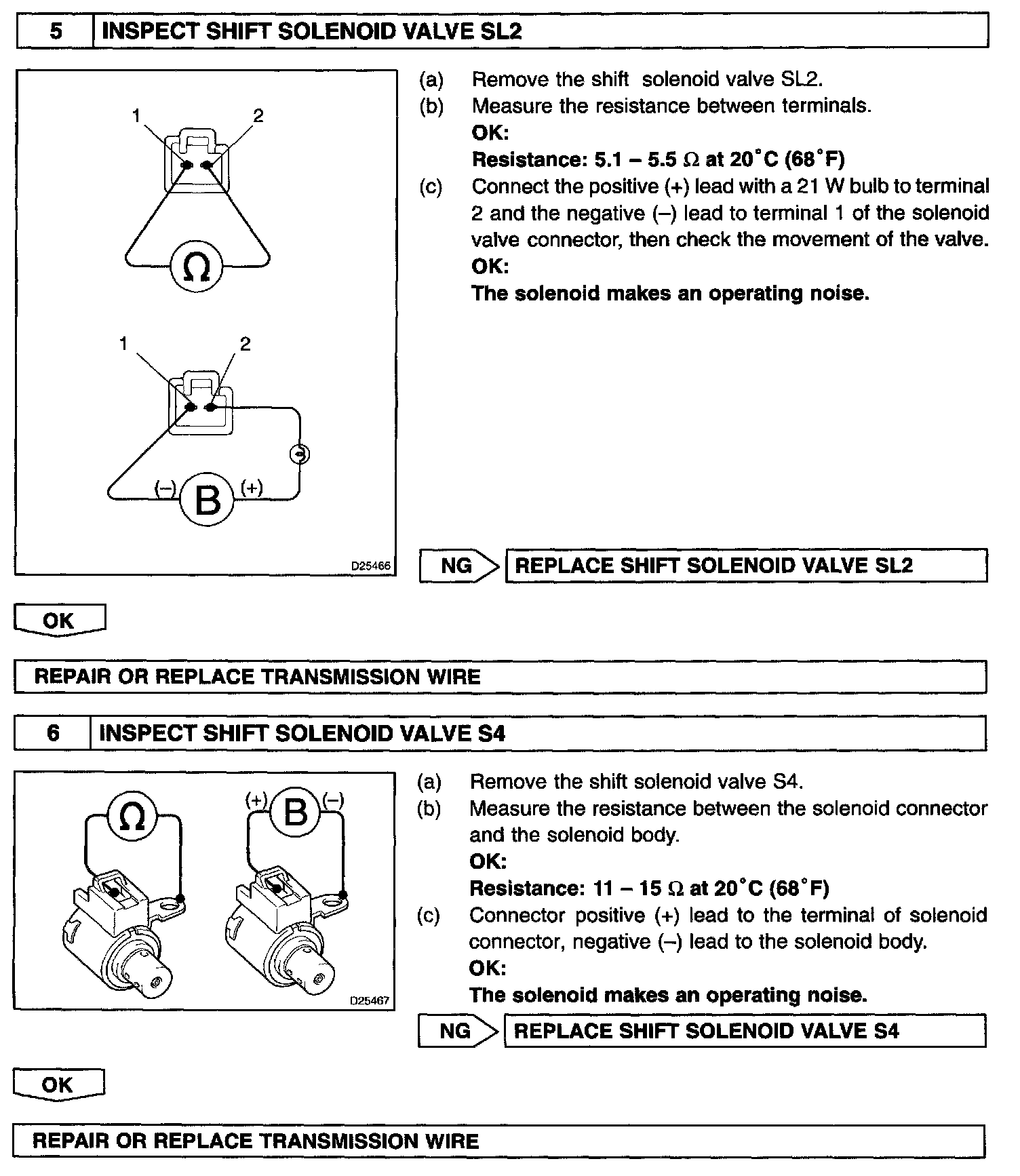 HINT: Check the shift solenoid valve SL1 when DTC P0748 is output, check the shift solenoid valve SL2 when DTC P0778 is output and check the shift solenoid valve S4 when DTC P0982 and P0983 is output.