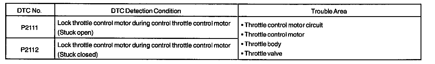 DTC P2111 THROTTLE ACTUATOR CONTROL SYSTEM-STUCK OPENCIRCUIT DESCRIPTION
