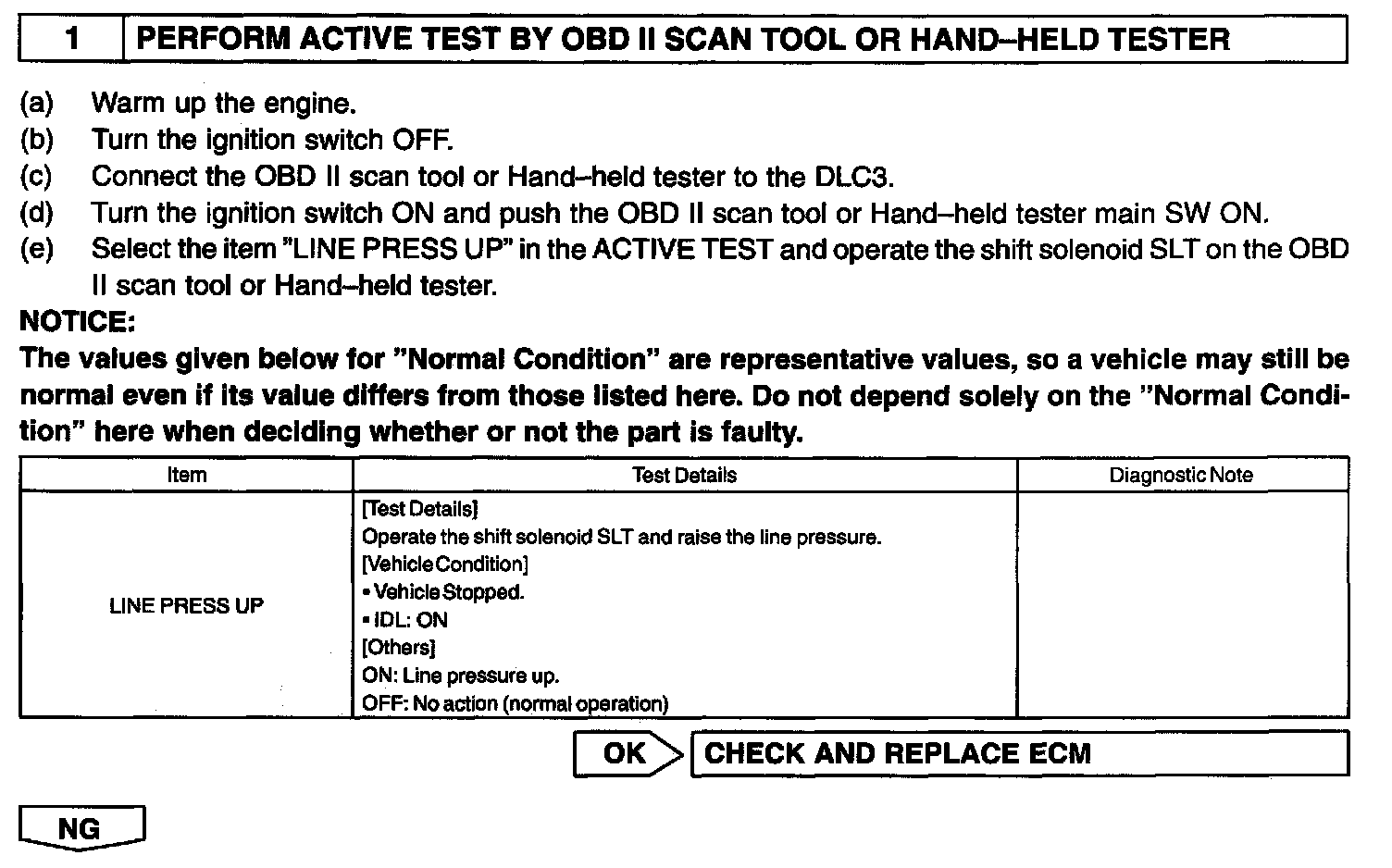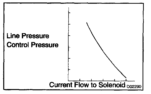 This controls the line pressure and provides smooth shifting. Upon receiving a signal of the throttle valve opening angle, the ECM controls the line pressure by sending a predetermined (*) duty ratio to the solenoid valve, modulating the line pressure and generating throttle pressure.
