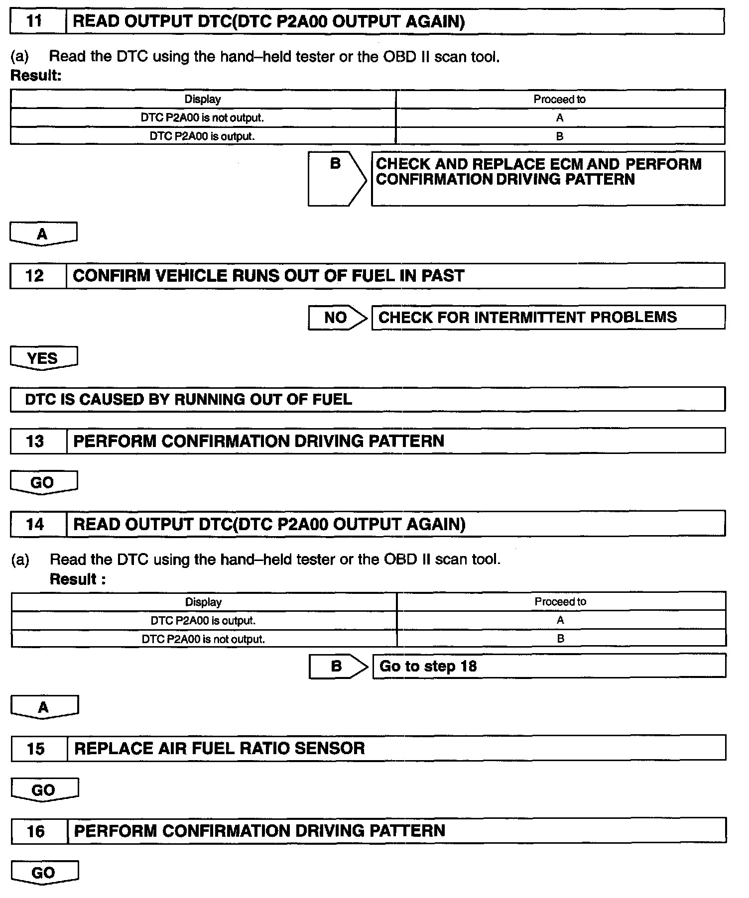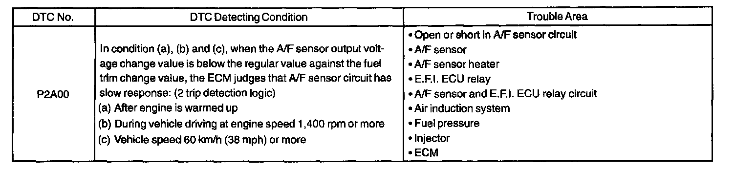 - DTC P2A00 may be also detected, when the air fuel ratio is stuck rich or lean