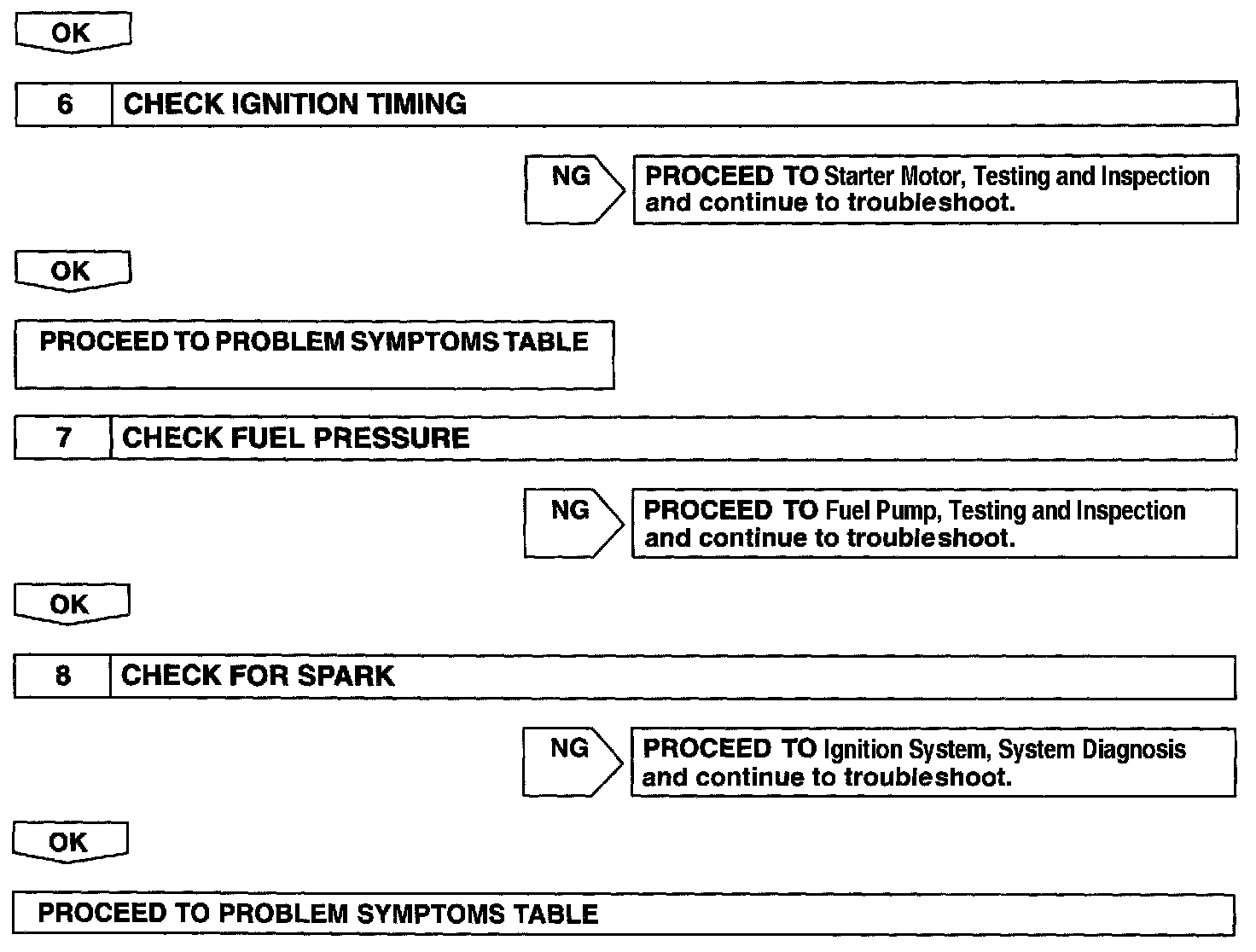 When the malfunction code is not confirmed in the DTC check, troubleshooting should be carried out in all the possible circuits considered as causes of the problems. In many cases, by carrying out the basic engine check shown in the flow chart, the location causing the problem can be found quickly and efficiently. Therefore, using this check is essential in the engine troubleshooting.