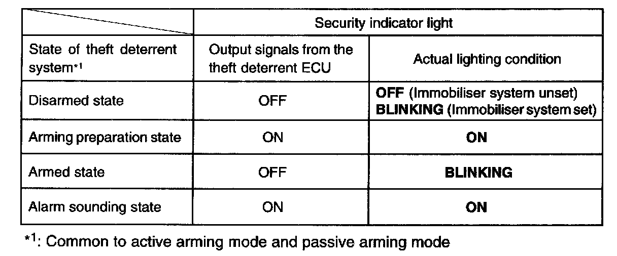 a. The theft deterrent ECU outputs a signal to light up the security indicator light, according to the state of the theft deterrent system. However, some of the actual lighting conditions of the security indicator light are different from the outputs of the theft deterrent ECU.