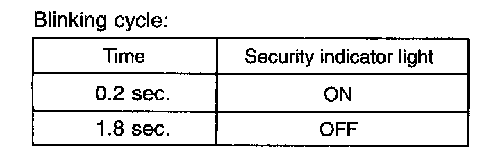 HINT: When the immobilizer system is set, the security indicator light blinks during the disarmed state and the armed state, due to the output signals from the immobilizer system.