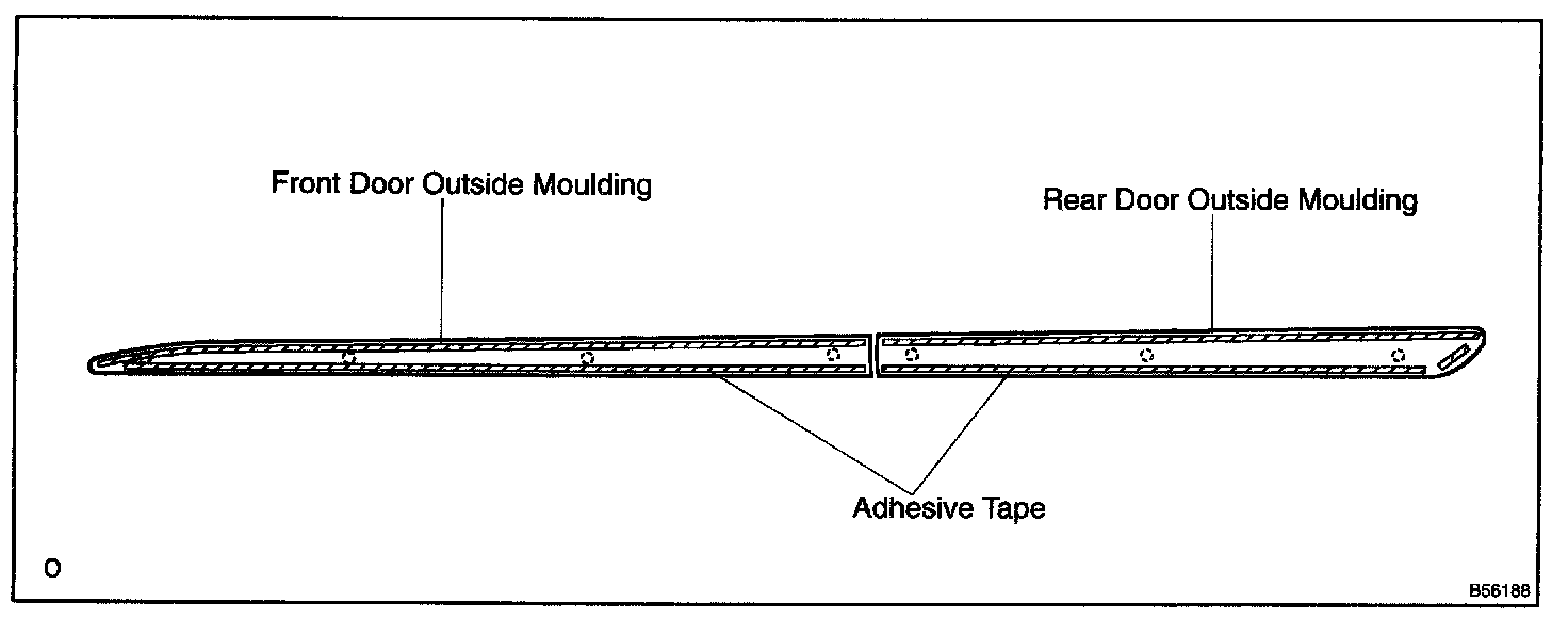 4. Apply new adhesive tape to the moulding as shown in the illustration.