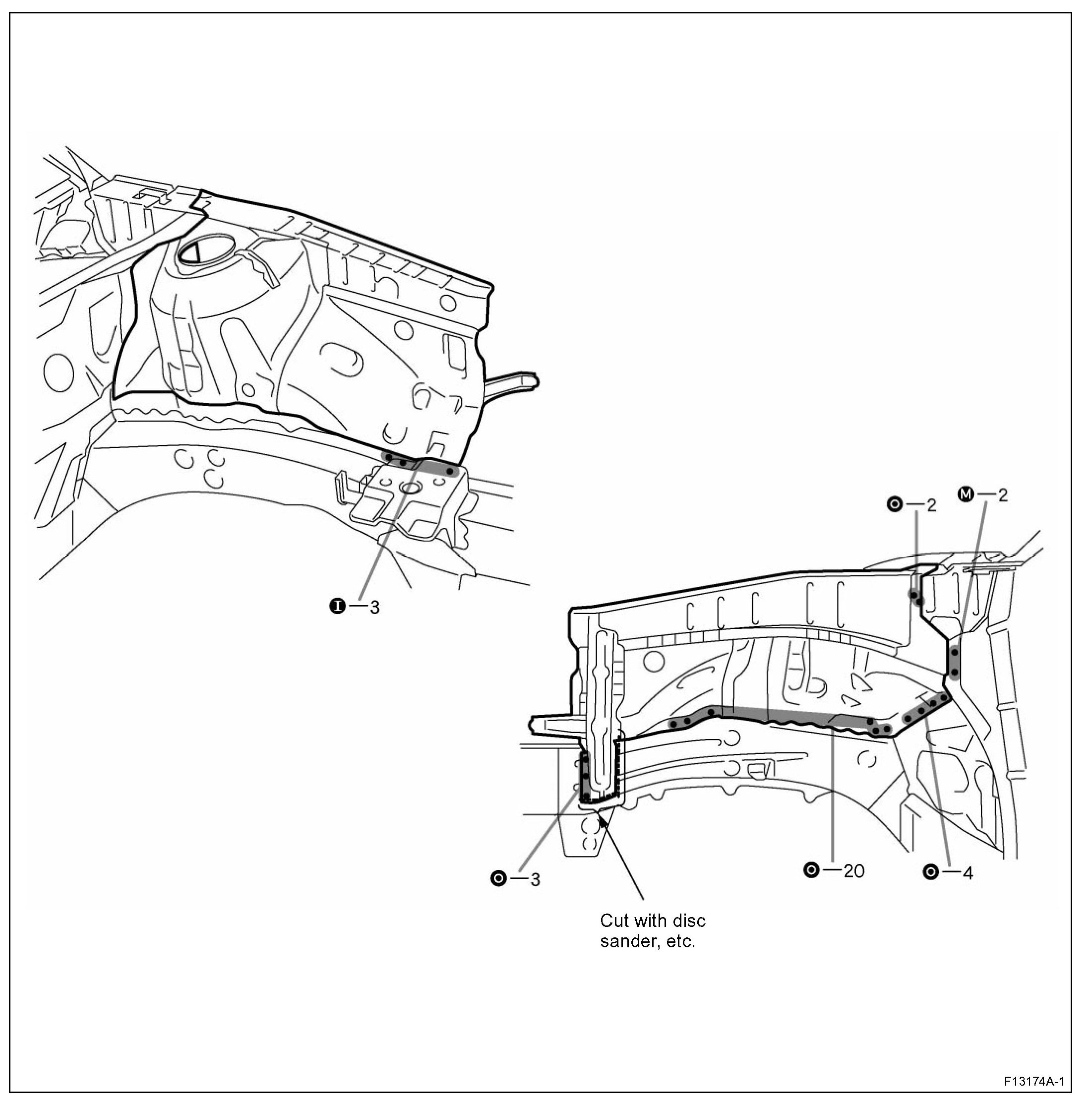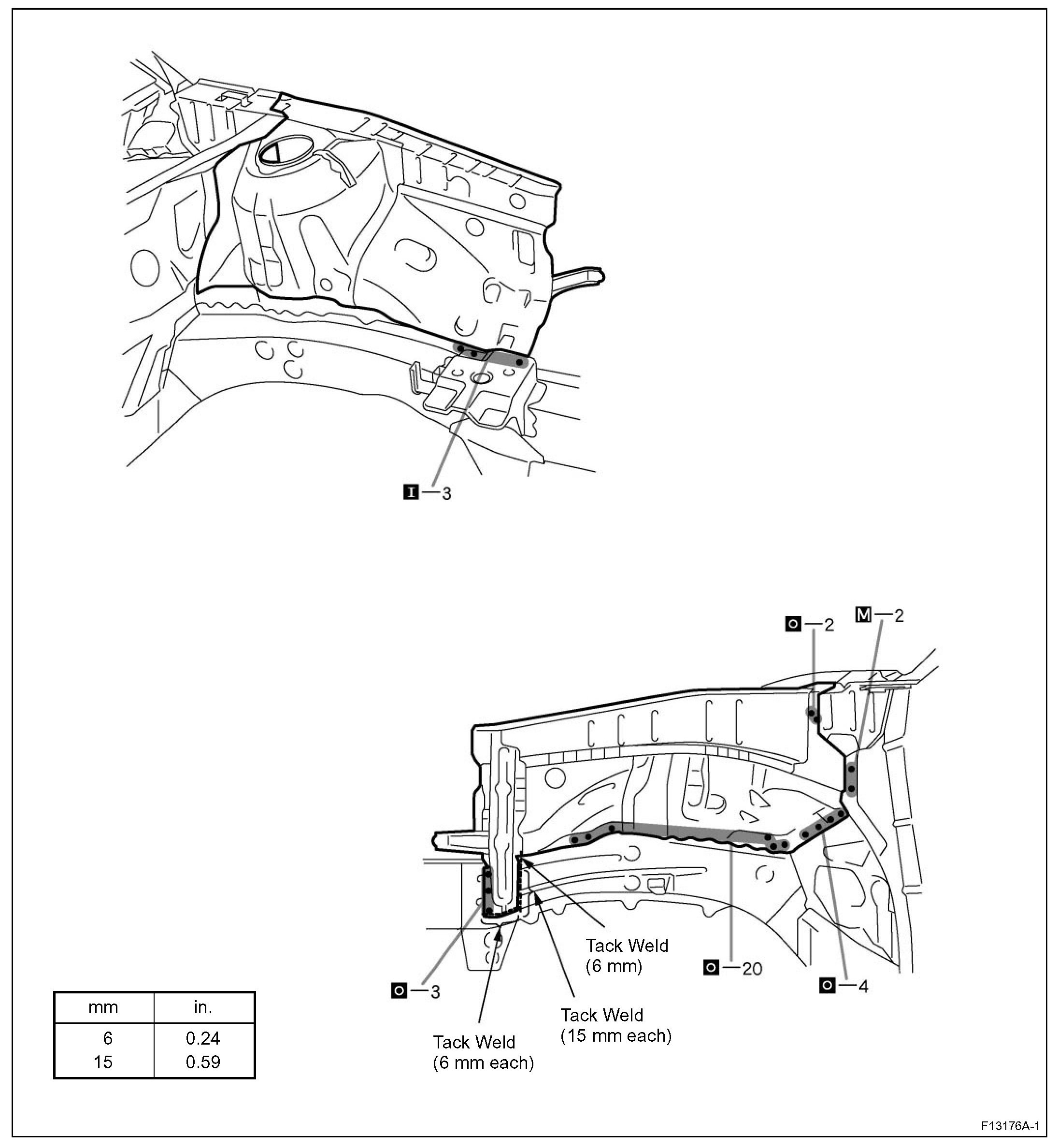 HINT: Inspect the fitting of the front fender and hood, etc. before welding, since this affects the appearance of the finish.