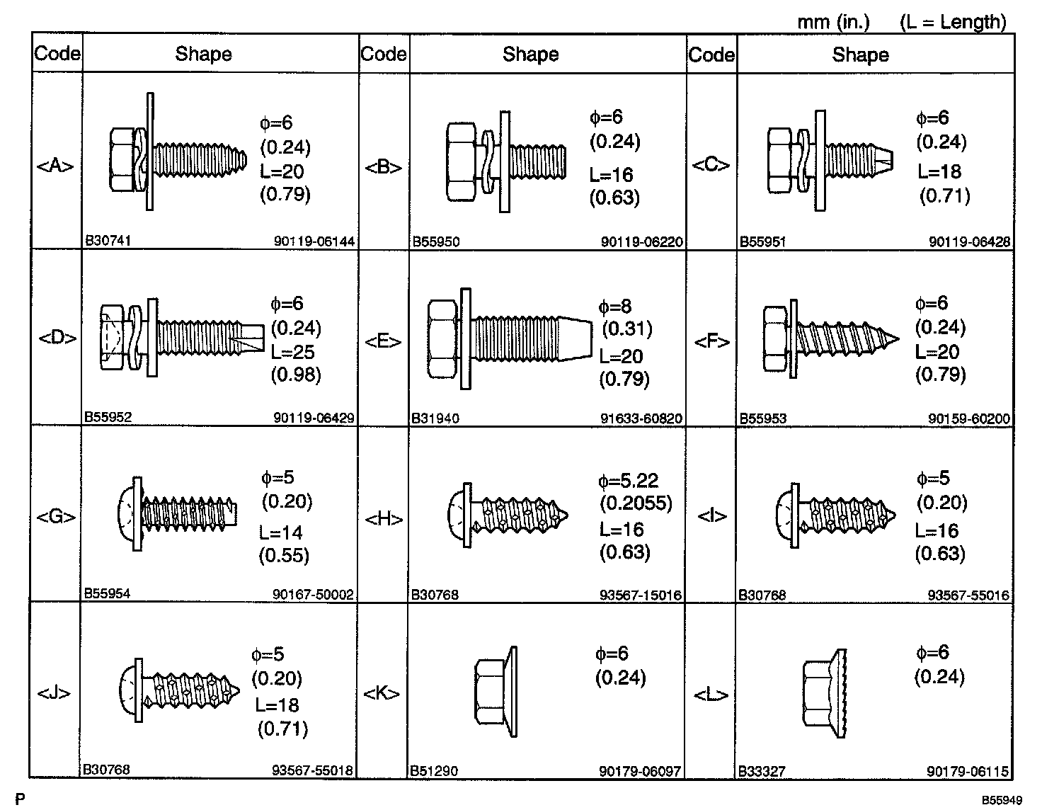 b. TMMK made: Remove the 2 bolts and 2 screws
