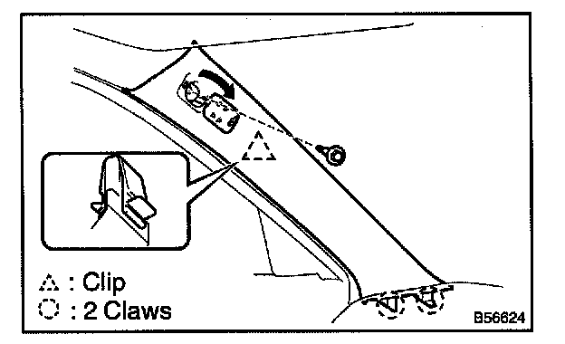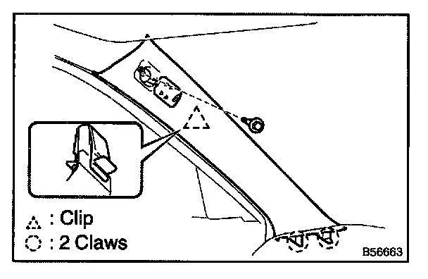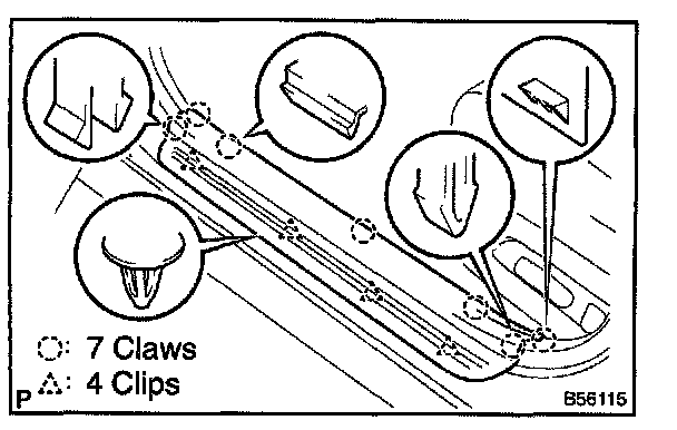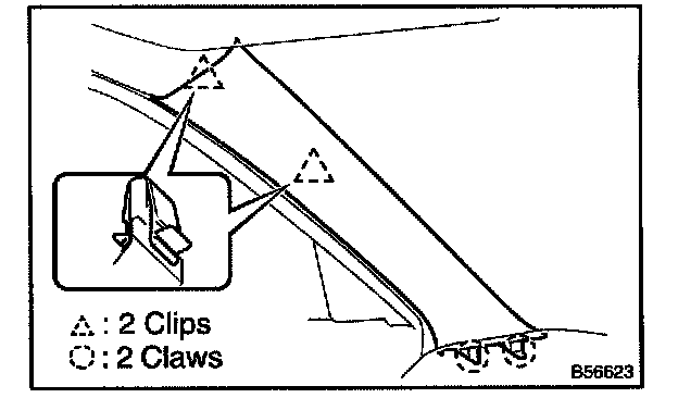 a. Using a moulding remover, disengage the 4 clips and 2 claws.