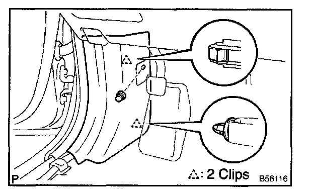 b. Disengage the 2 clips and remove the cowl side trim sub-assy LH.