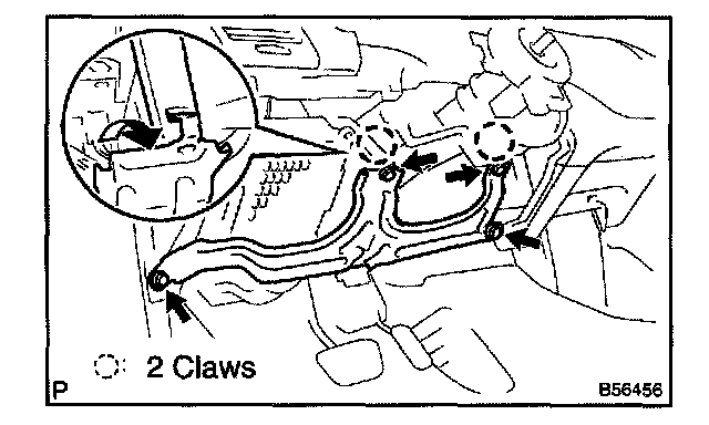 a. Disengage the 2 clips, 2 claws and disconnect the connector.