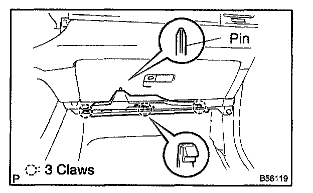 a. Disengage the 4 claws and remove the glove box lamp assy.