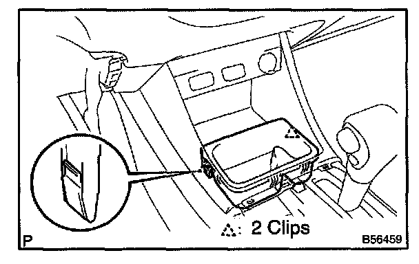 a. Disengage the 2 clips and remove the instrument panel cup holder tray.