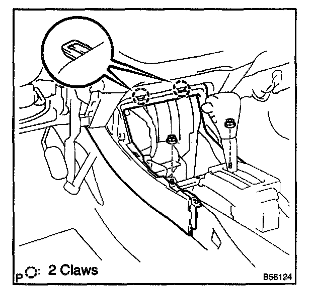 b. Disengage the 2 claws and remove the instrument panel insert sub-assy LWR LH.