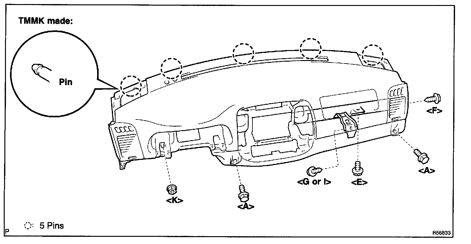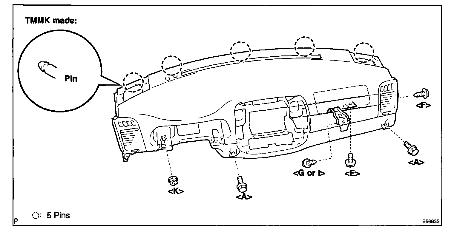 d. TMMK made: Install the instrument panel safety pad sub-assy with 2 screws