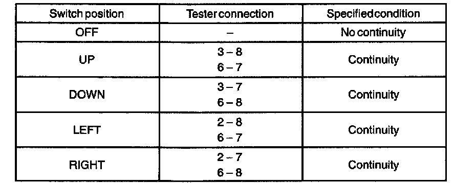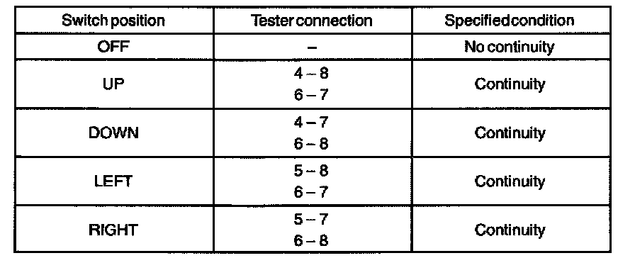 a. Inspect the mirror switch continuity.