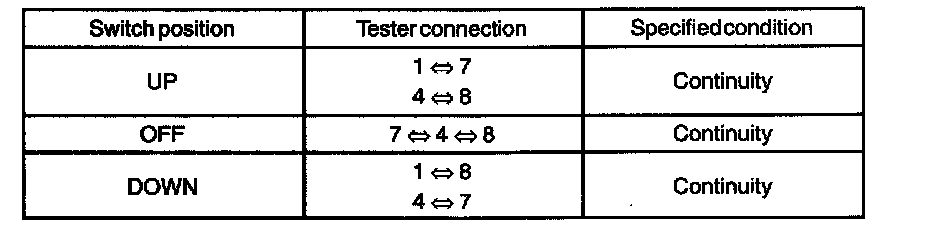 a. Inspect the front power seat switch continuity.