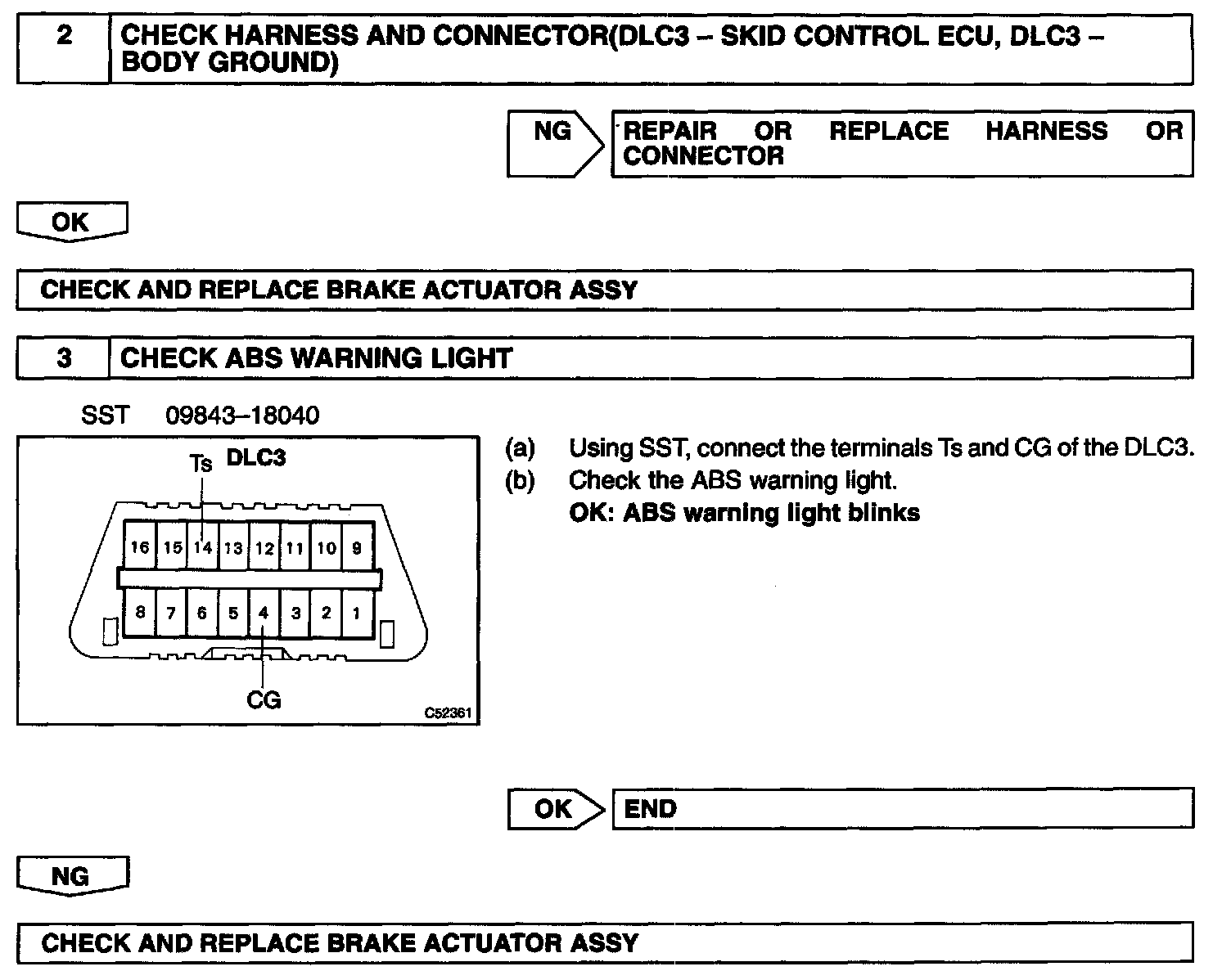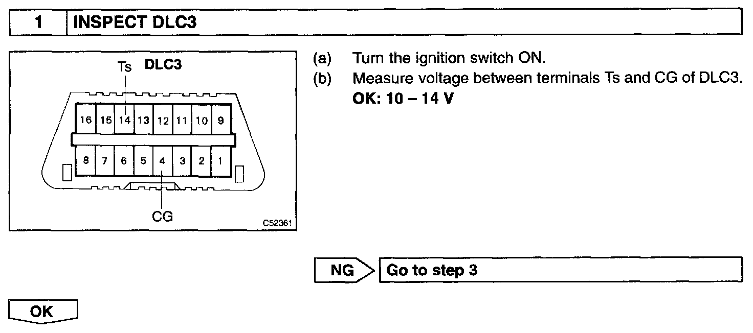 Connecting terminals Ts and CG of the DLC3 starts the check.