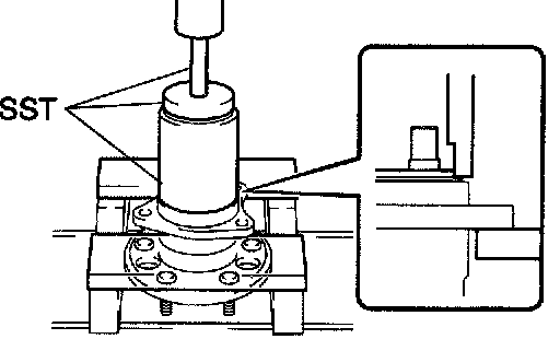 c. Using SST and a press, install the skid control sensor to the axle hub.
