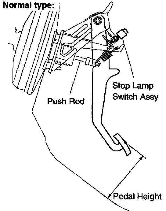 If incorrect, check the stop lamp switch assy clearance.
