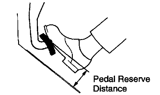 With engine running, depress the pedal and measure the pedal reserve distance, as shown.