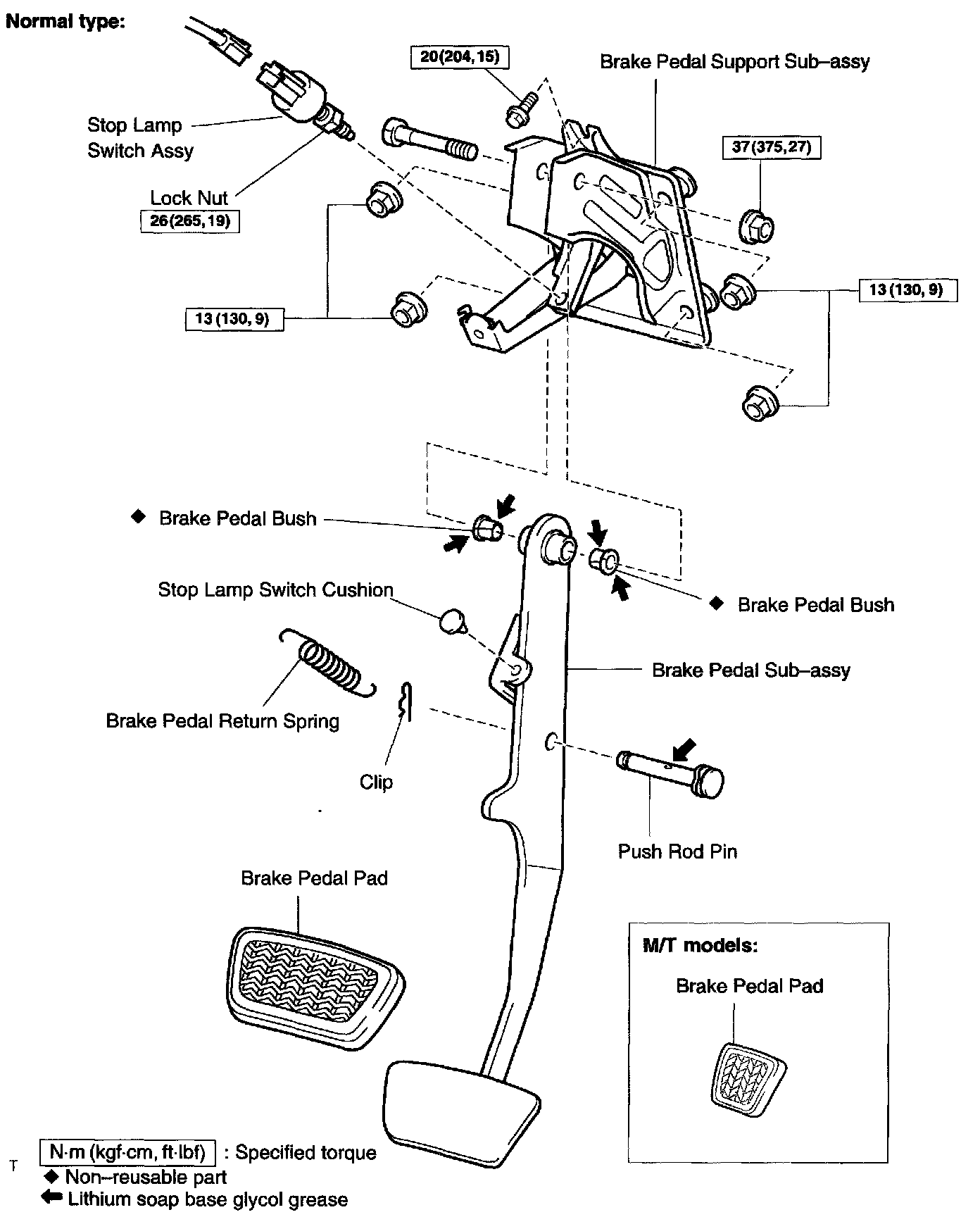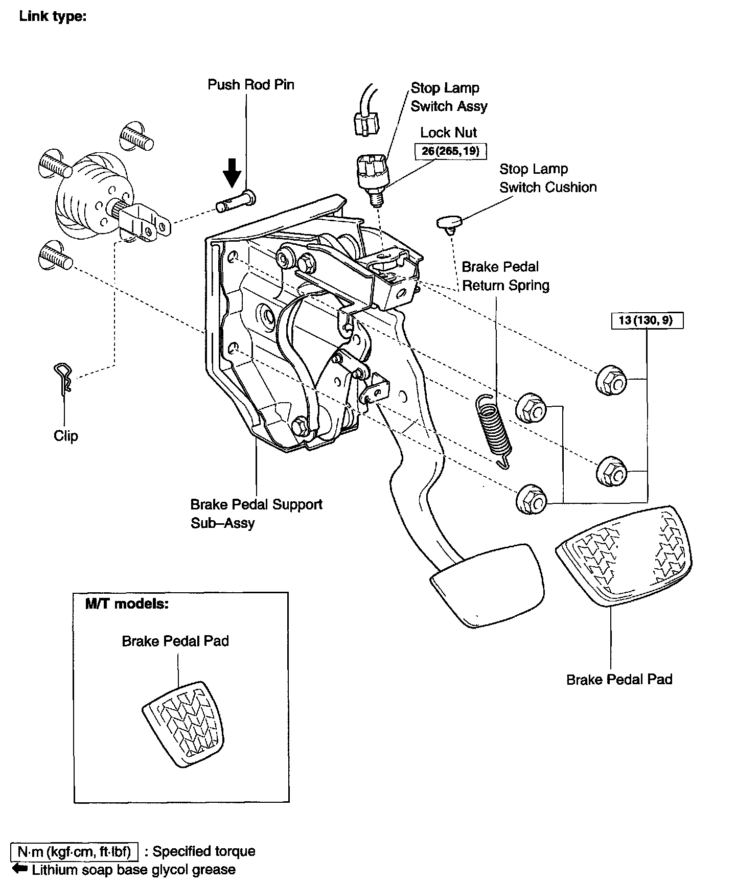 c. Link type: Remove the 4 nuts and brake pedal support assy.