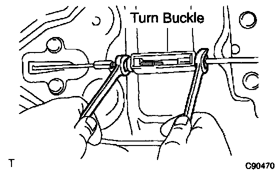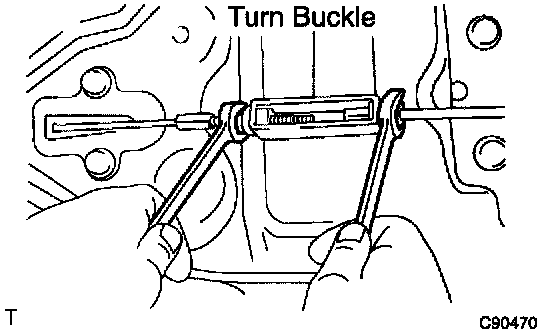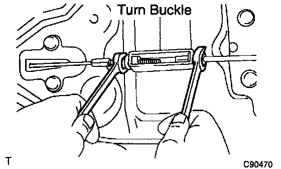c. Tighten the turn buckle, connect the parking brake cable assy No.4 to the parking brake cable assy No. 1.