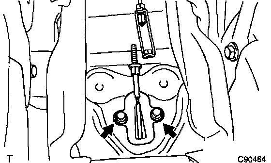 c. Remove the 2 bolts and separate the parking brake cable No.1 from the parking brake equalizer.
