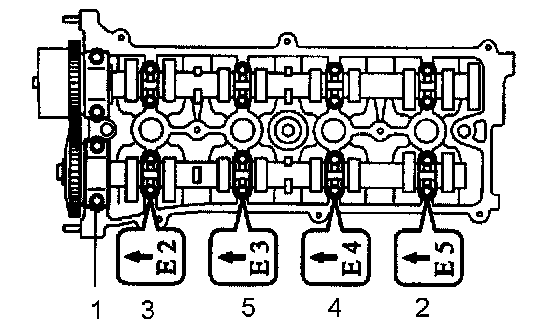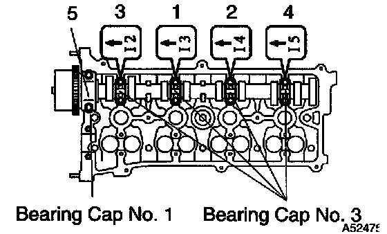 a. Remove the No.1 and No.3 camshaft bearing cap in the sequence shown in the illustration.