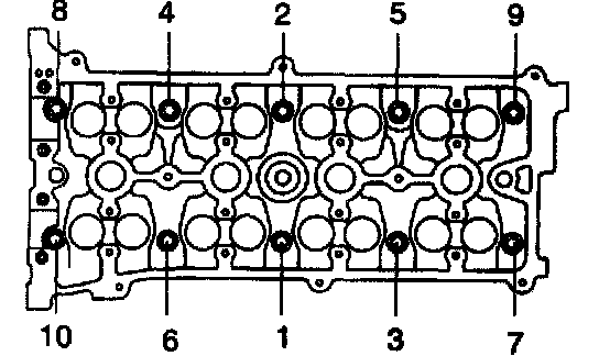 e. Retighten the cylinder head bolts by 90° in the sequence shown.