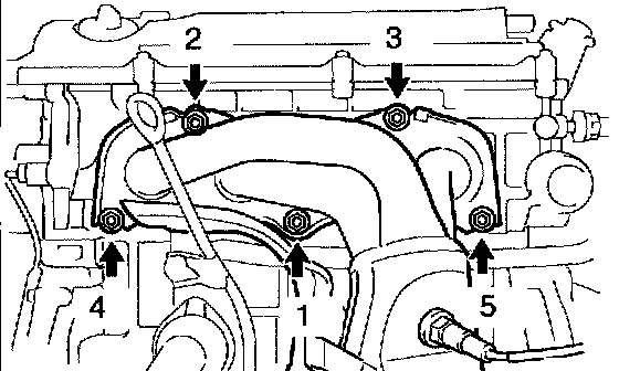 a. Install a new gasket and the exhaust manifold with the 5 nuts.