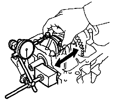 a. Using a dial indicator, measure the thrust clearance while moving the connecting rod back and forth.