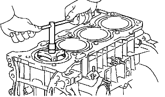 b. Push the piston, connecting rod assembly and upper bearing through the top of the cylinder block.