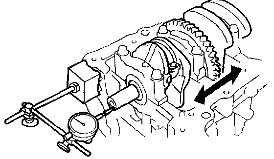 a. Using a dial indicator, measure the thrust clearance while prying the crankshaft back and forth with a screwdriver.