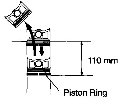 a. Using a piston, push the piston ring a little beyond the bottom of the ring travel, 110 mm (4.33 inch) from the top of the cylinder block.