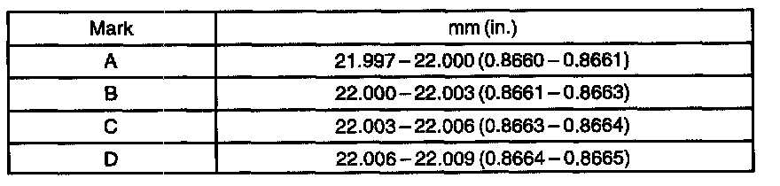 Piston pin diameter: 21.997 - 22.009 mm (0.8660 - 0.8665 inch)