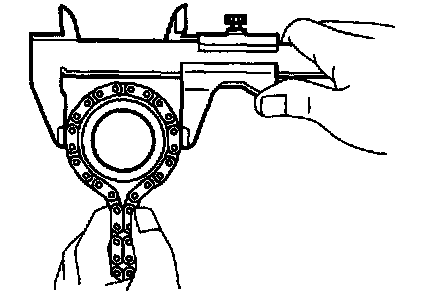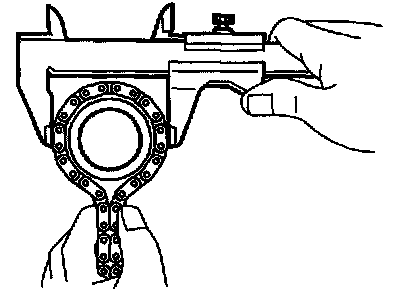 b. Using a vernier calipers, measure the timing sprocket diameter with the chain.