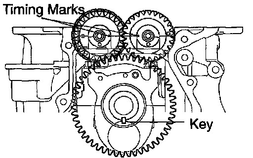 e. Confirm that timing marks of the balance shaft are matched as shown in the illustration when the key groove is at 6 o'clock position.