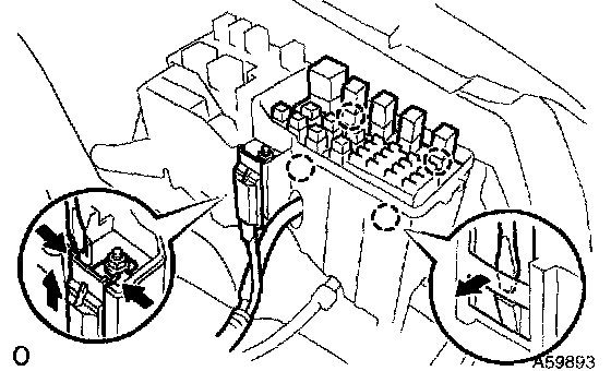 2. Using a screwdriver, unlock the engine room junction block. Disconnect the engine wire by pulling it upward.
