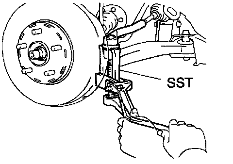 b. Using SST, disconnect the tie rod end from the steering knuckle. SST 09628-62011