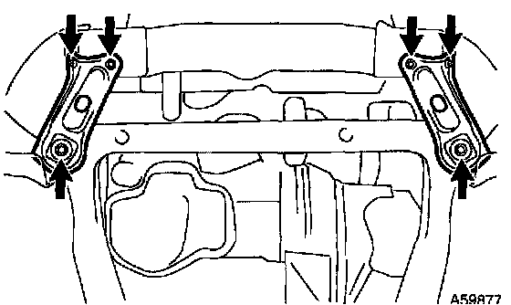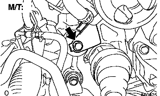 e. Remove the bolt installing the engine lateral control rod (M/T).