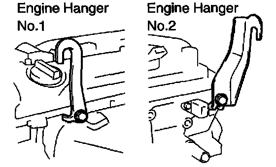 e. Install the 2 engine hangers as shown in the illustration.