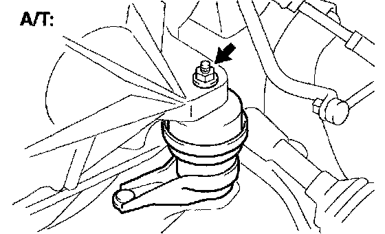 a. Remove a nut installing the engine mounting insulator LH (A/T).