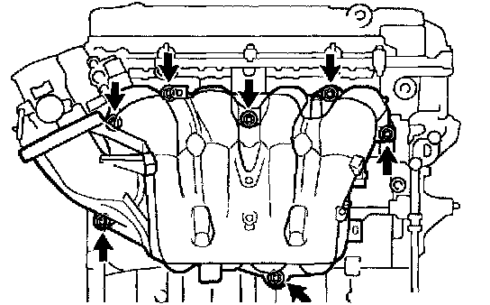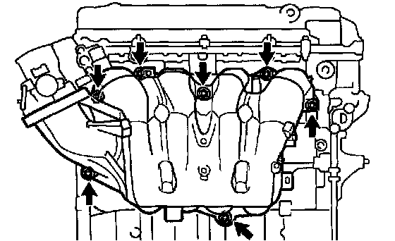 a. Install a new gasket and the intake manifold with the 5 bolts and 2 nuts.