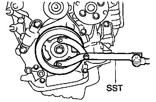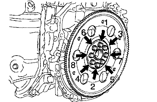 b. Remove the 8 bolts, rear spacer, flywheel sub-assy.