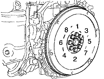 d. Install and uniformly tighten the 8 bolts, in several passes, in the sequence shown.