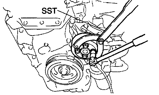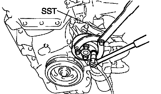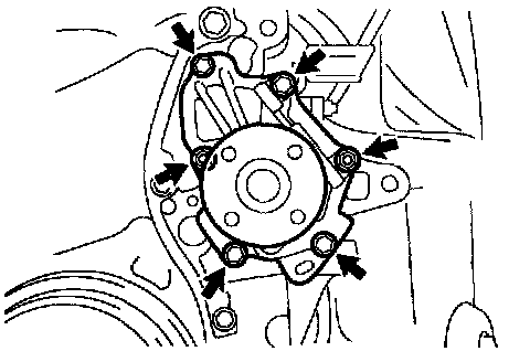 a. Remove 4 bolts, 2 nuts, bracket and water pump.