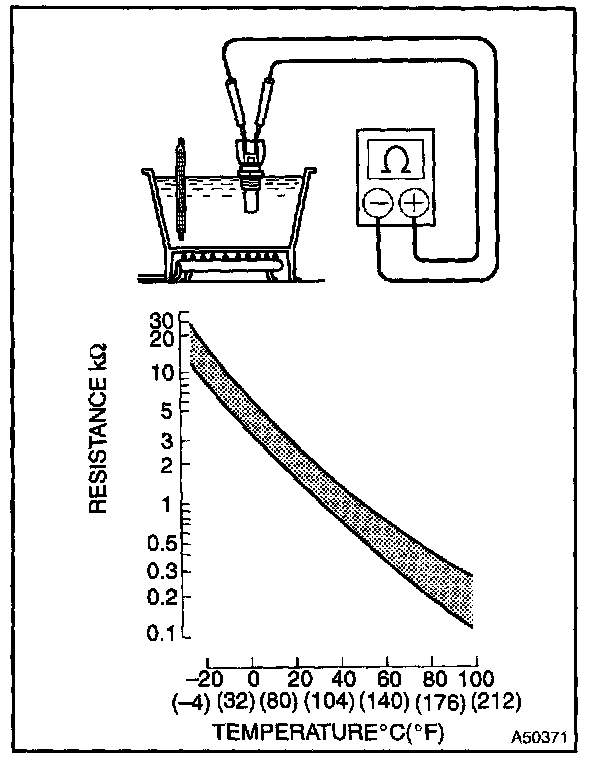 NOTE: In case of checking the water temperature sensor in the water, be careful not to allow water to go into the terminals, and after checking, wipe out the sensor.