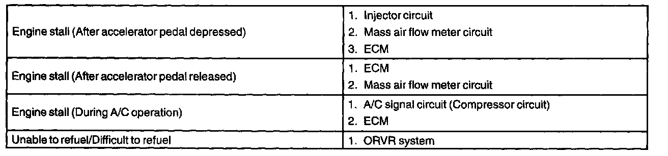 Probelm Symptoms Table Part 1: