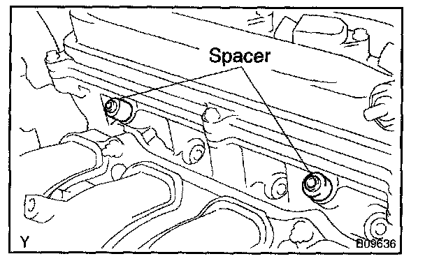 a. Place 2 spacers in position on the cylinder head.
