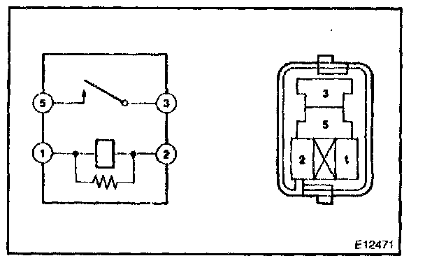 2. Using an ohmmeter, check that continuity exists between terminals 3 and 5 when the battery voltage is applied across terminals 1 and 2.